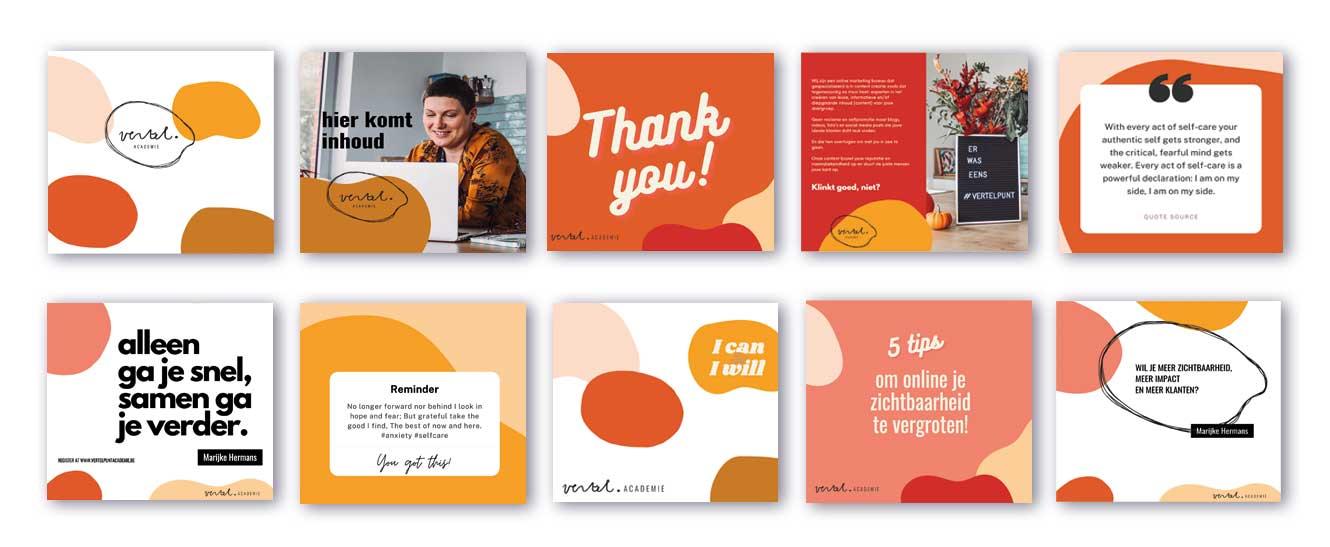 3. Nikkeldesign ontwerpt 8 verschillende posts in Canva.